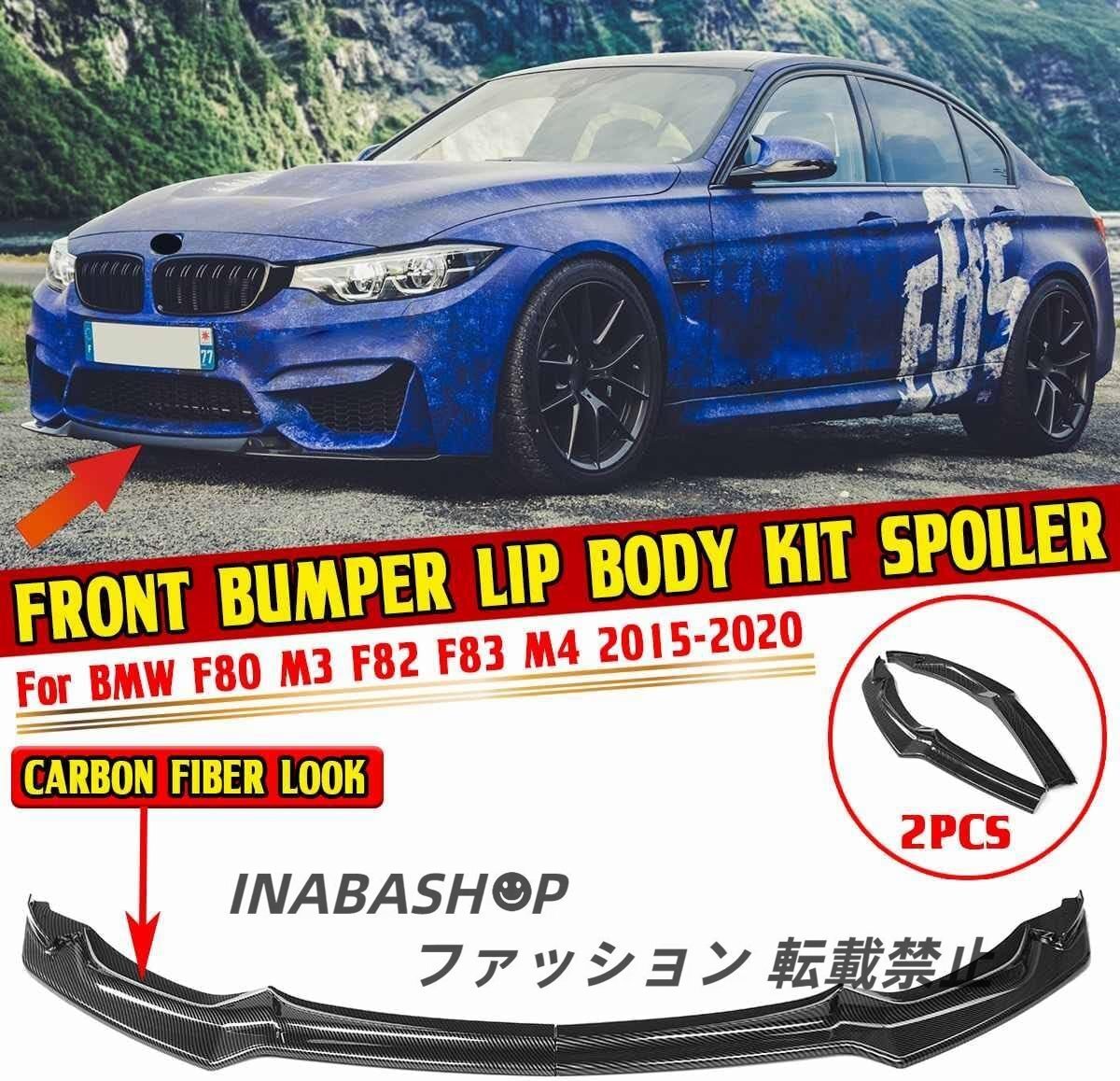 > ブラックカーボンファイバールックフロントバンパーリップスポイラーBMW F80 M3 F82 F83 M4 2015-2020