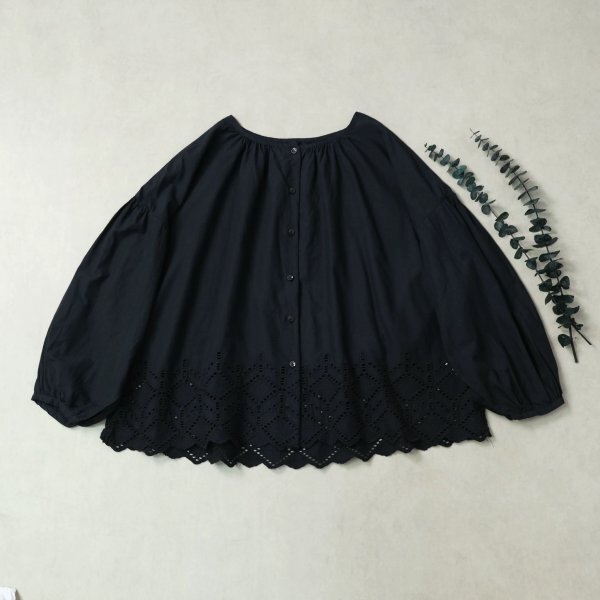 > ns 2508 ブラック フリーサイズ チュニック トップス ナチュラル 綿100% ゆったり刺 ゆったり 大人可愛デザイン