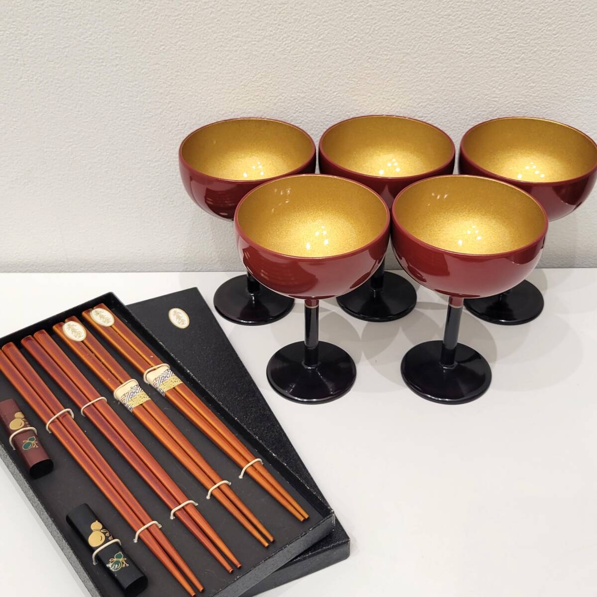 - (D8913-)1円スタート!!酒器 ワインカップ 先付用 5客 箸・箸置きセット 4膳