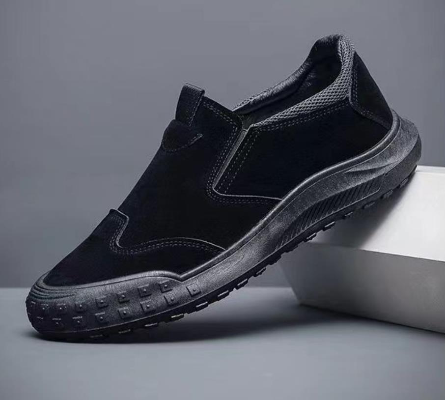 - 送料無料 匿名 スニーカー メンズ スエード風 スリッポン フラット ブラック 26.5cm