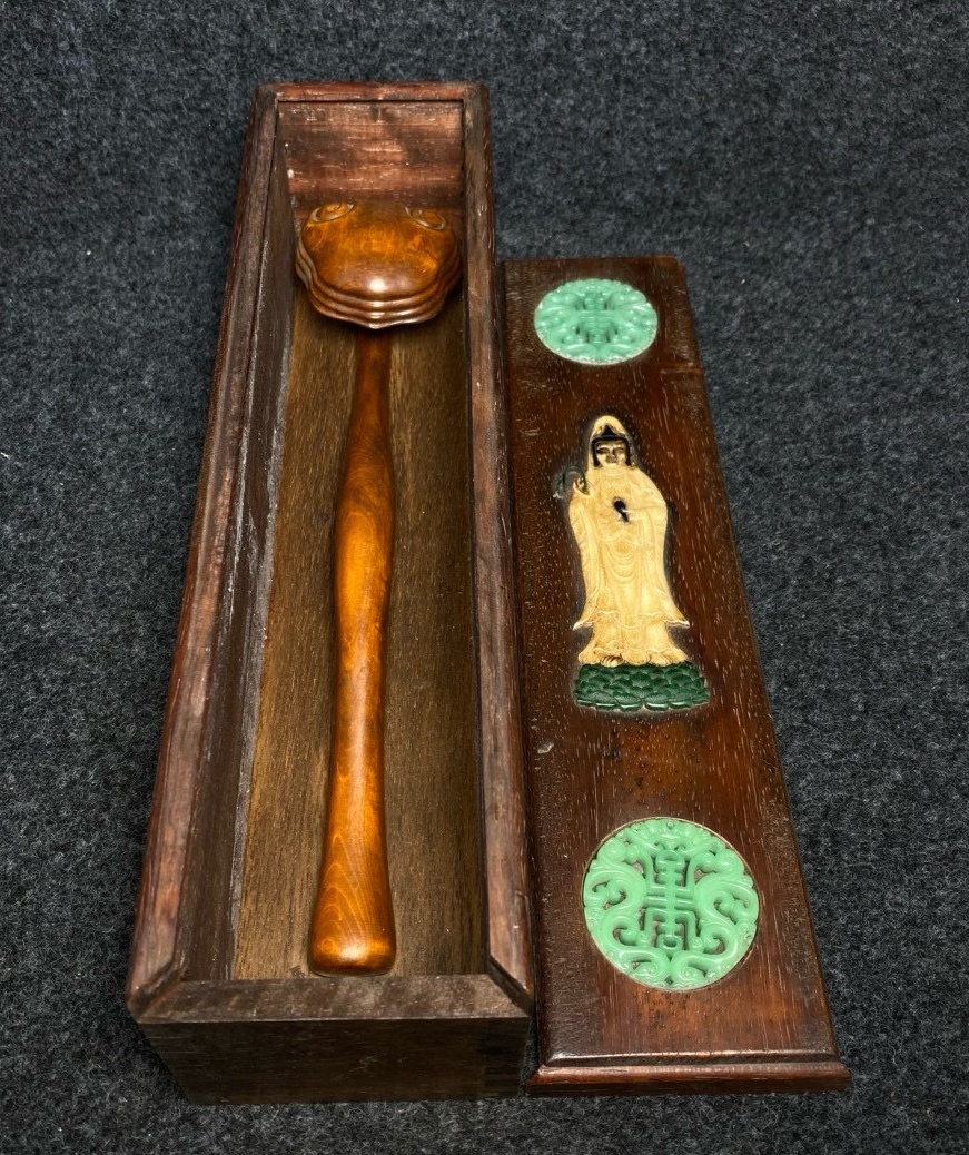 - 秘藏 清代 黄楊木如意 書道具 文房具 時代物 中国古美術 細密彫 置物 賞物 唐物 文玩 816