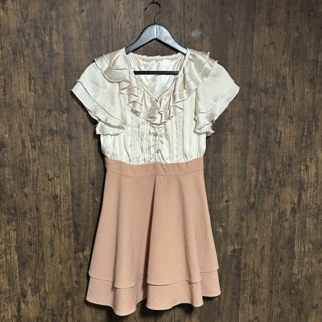 > C7◇CECIL McBEE | セシルマクビー フリルブラウス切替ワンピース アイボリー×くすみピンク レディース Mサイズ 中古品
