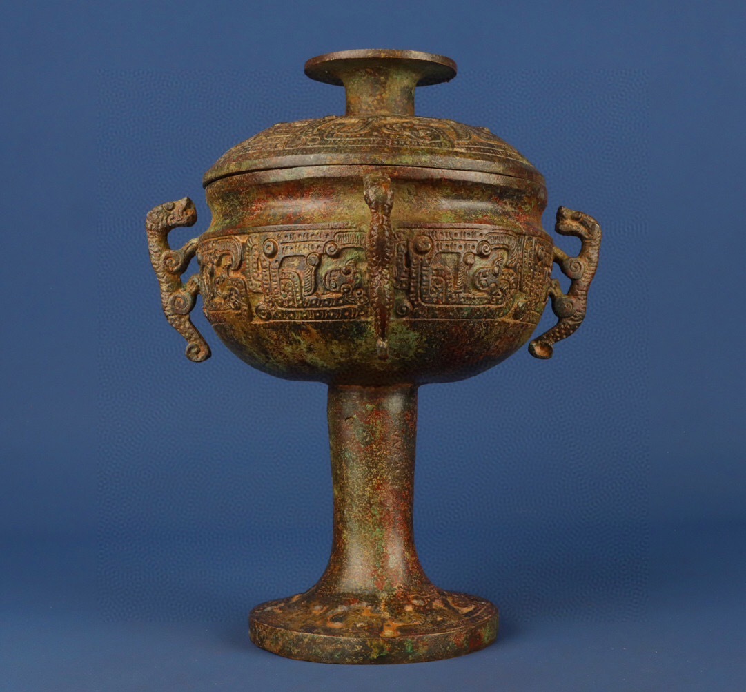 - 蔵友旧蔵出 西周 青銅作 四龍豆 希少珍品 貴重品 置物 古賞物 中国古玩 中国古美術品 館蔵品