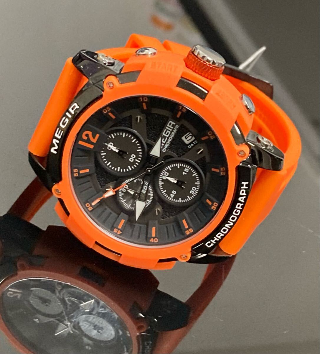 - 高品質 メンズ腕時計 オマージュ クロノグラフ可動 防水 サーフィン スーツ ステンレス オレンジラバーベルト 即日発送1876w