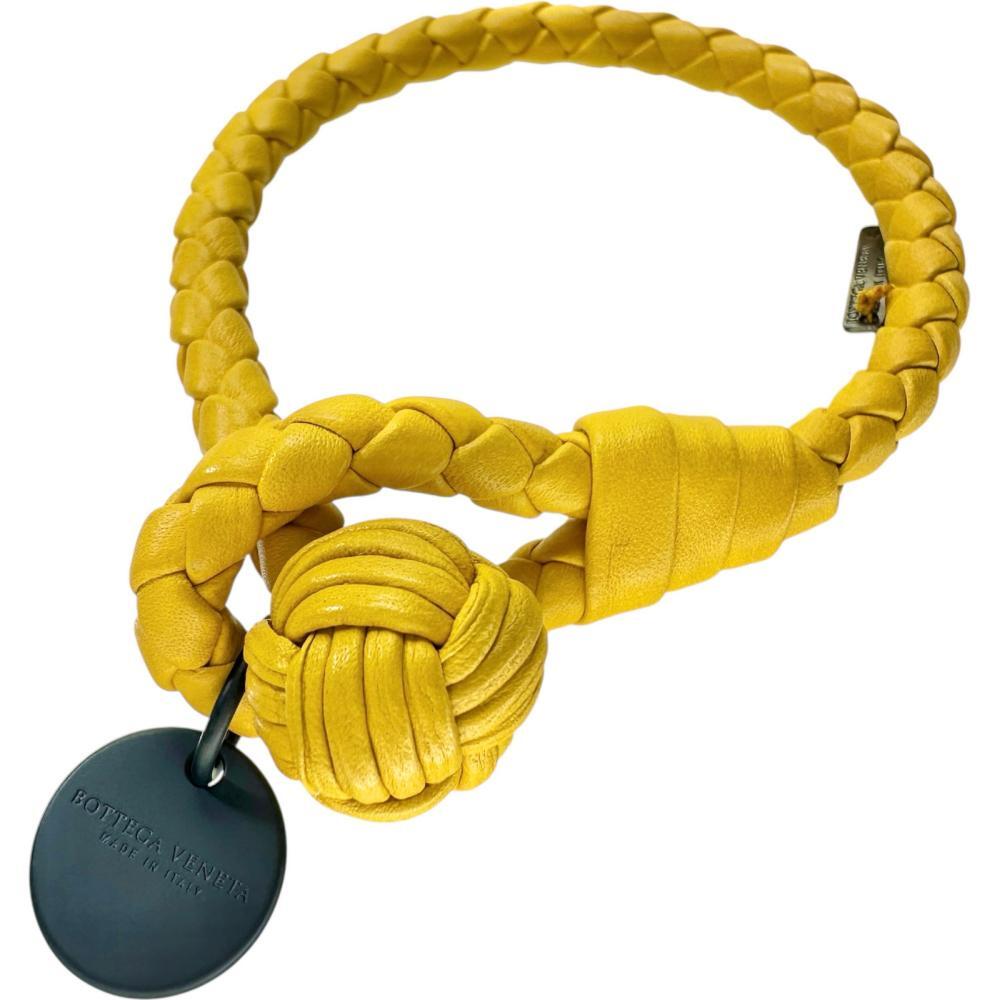 > BOTTEGAVENETA/ボッテガヴェネタ イントレチャート ブレスレット レザー 7.8g 16.5cm イエロー レディース