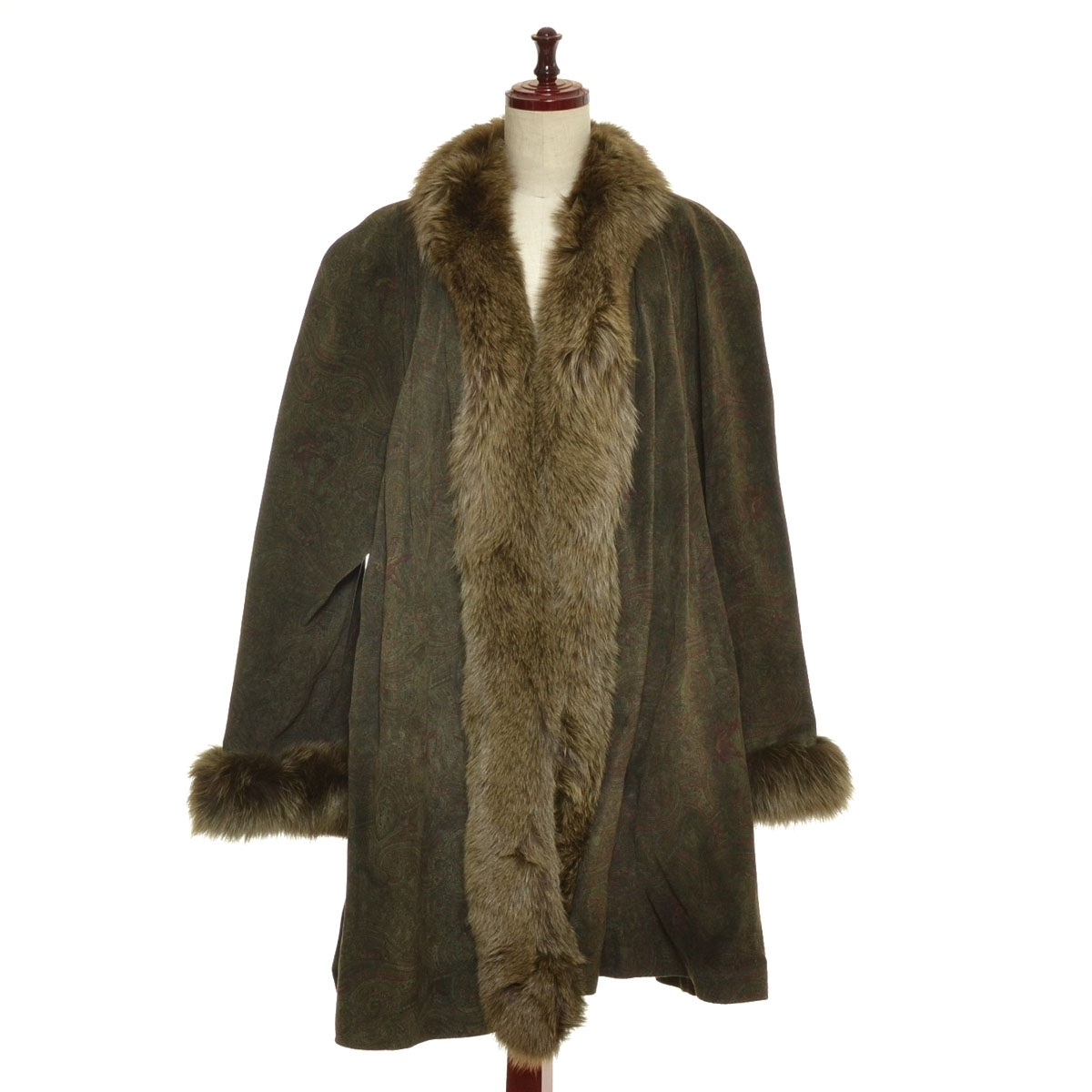 - □550503 Lepanto レパント ○コート ファー ペイズリー柄レザーコート サイズF レディース カーキ