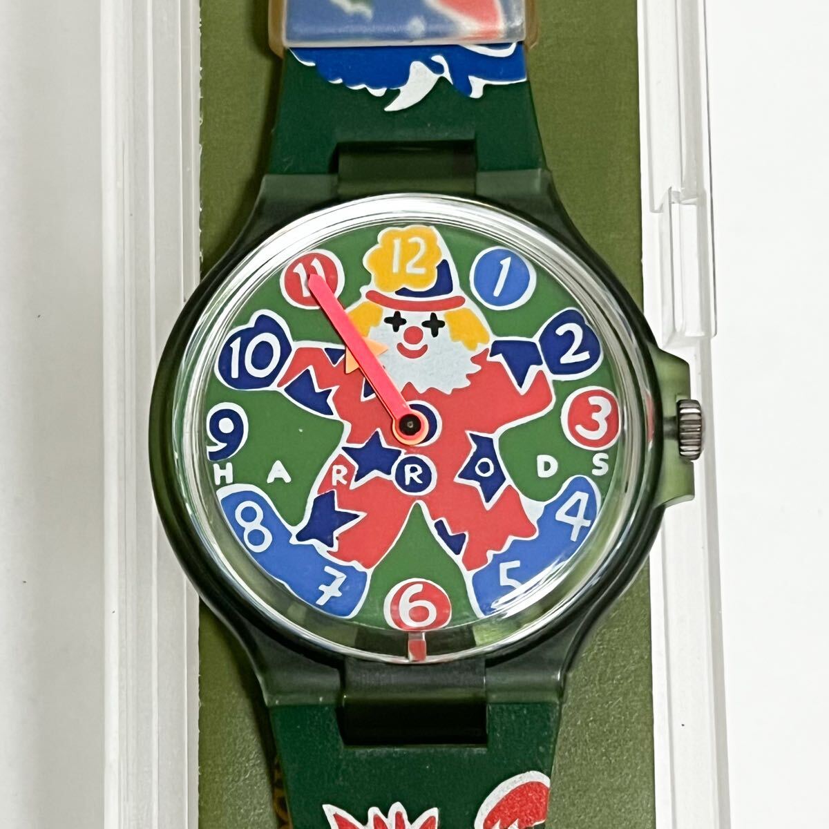 > 和822★ 美品 HARRODS SWISS MADE ハロッズ クォーツ 2針 腕時計 ウォッチ ピエロ 総柄 グリーン レディース