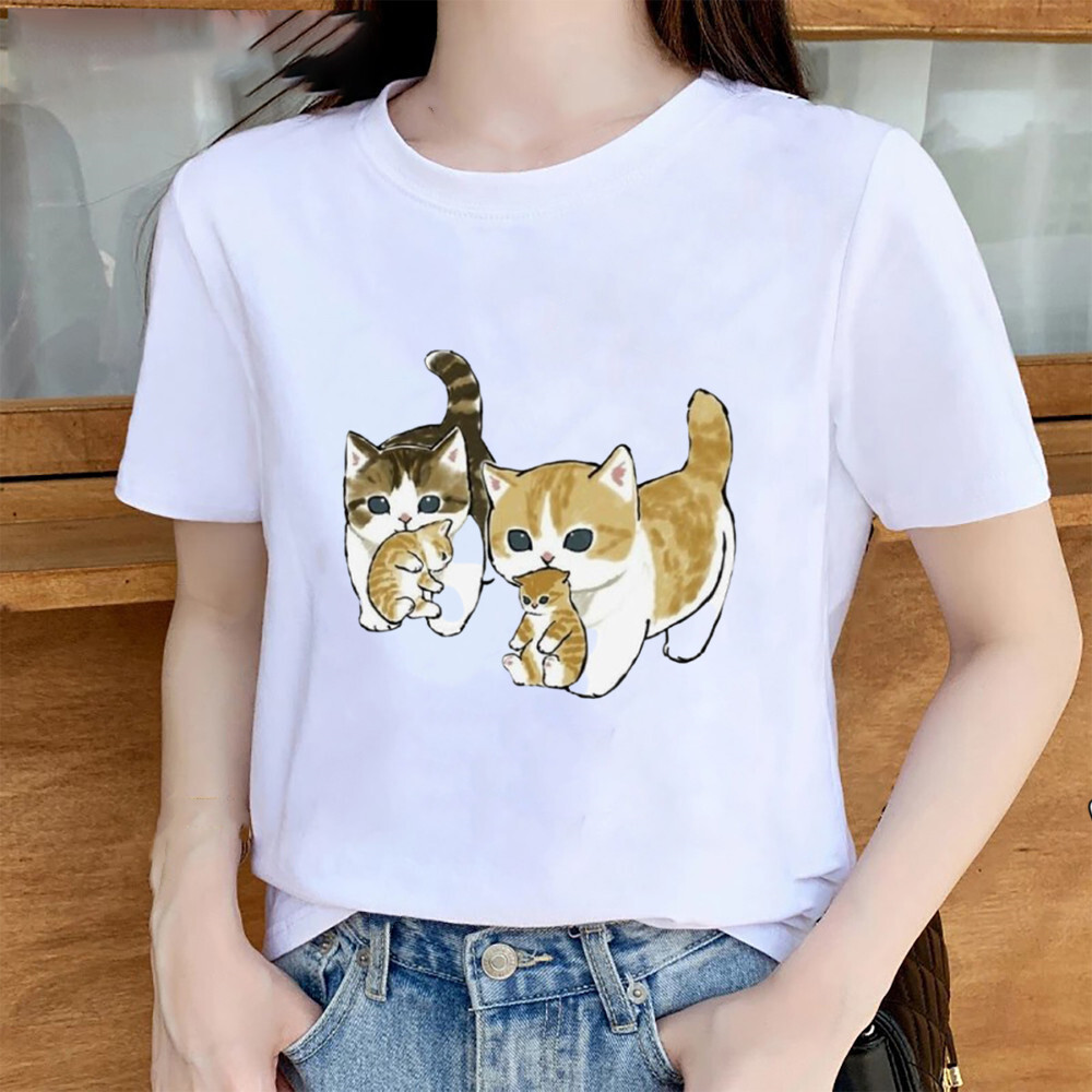 > Tシャツ レディース 半袖 猫柄 綿100% イラスト シンプル ネコ ねこ トップス (3XL)