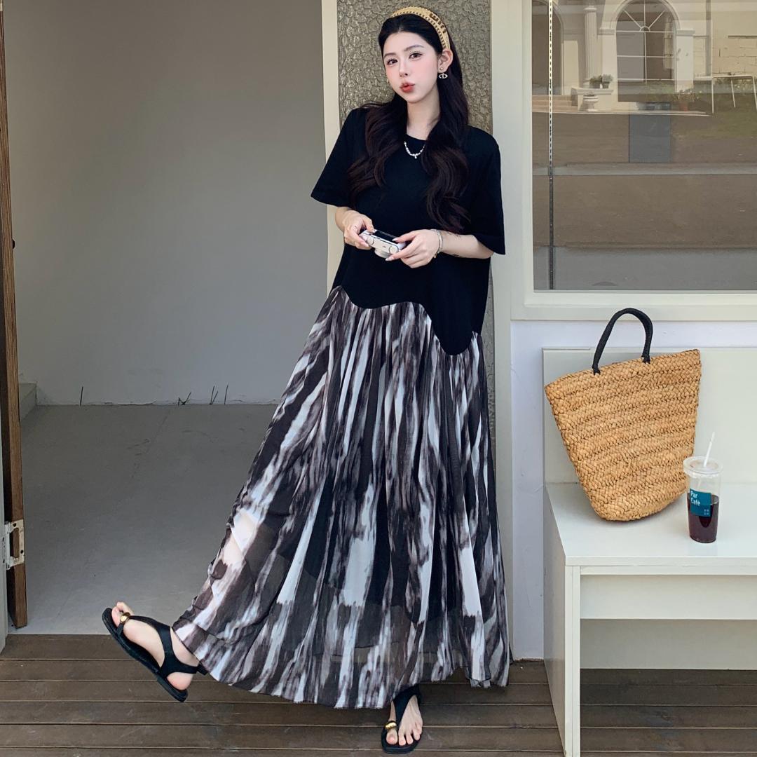 - 【新品】大きいサイズ4L夏服ゆったり半袖 切替ロングワンピース楽ちん体型カバー