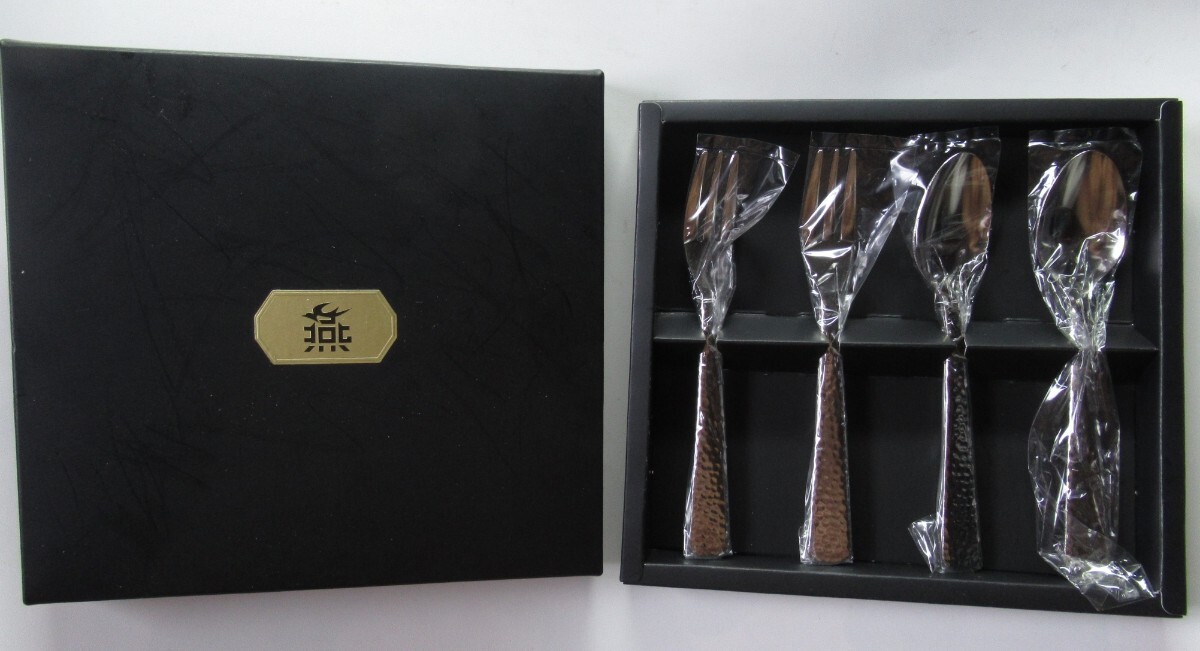 - 燕匠一 鎚目(つちめ)スプーンフォークペア4P /送料無料 日本製 新潟県燕市 オーソドックス お客様用 コーヒースプーン、ヒメフォーク