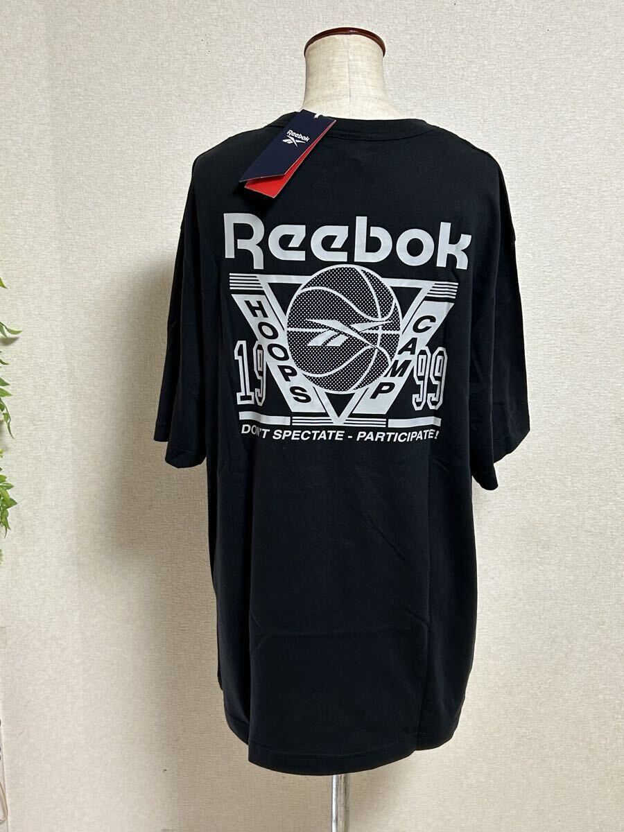 - タグ付き【Reebok★リーボック】バスケット・プリントTシャツ・コットン・ブラック・メンズサイズXO・①