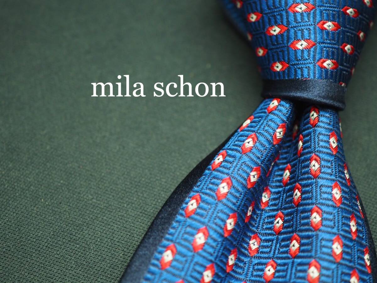 - 美品【Mila Schon ミラショーン】 F1401 ネイビー 赤系 SILK ブランド ネクタイ 古着 良品