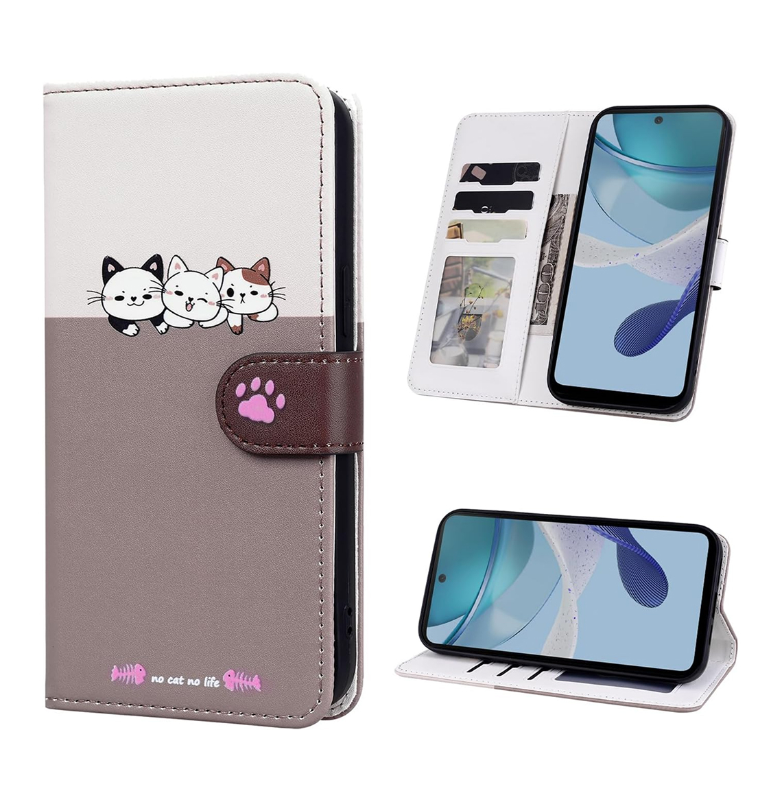 > moto g53j 5G / moto g53y 5G ケース 手帳型 PUレザー 子猫犬柄ケース カード収納 マグネット式 スタンド機能 ライトブラウン ay527