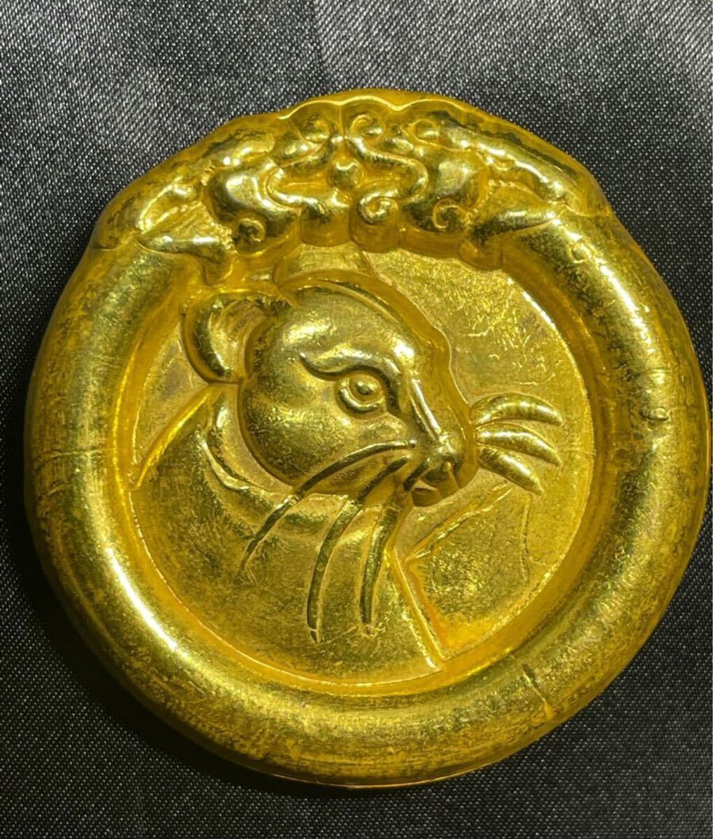 - 中国古銭 金貨 干支鼠図 [大清 金庫 康熙年造 御賜足金]銘 美品 超激レア 金運UP 縁起物 収蔵 開運金塊 金錠 金餅 インゴット 風水置物