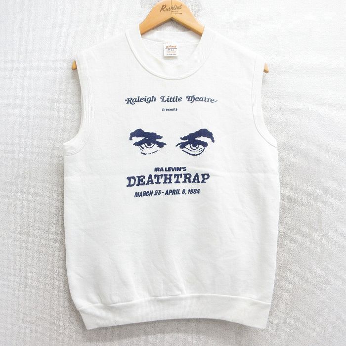 - S/古着 ノースリーブ スウェット メンズ 80s 目 DEATHTRAP クルーネック 白 ホワイト 25aug13 中古 スエット トレーナー トップス