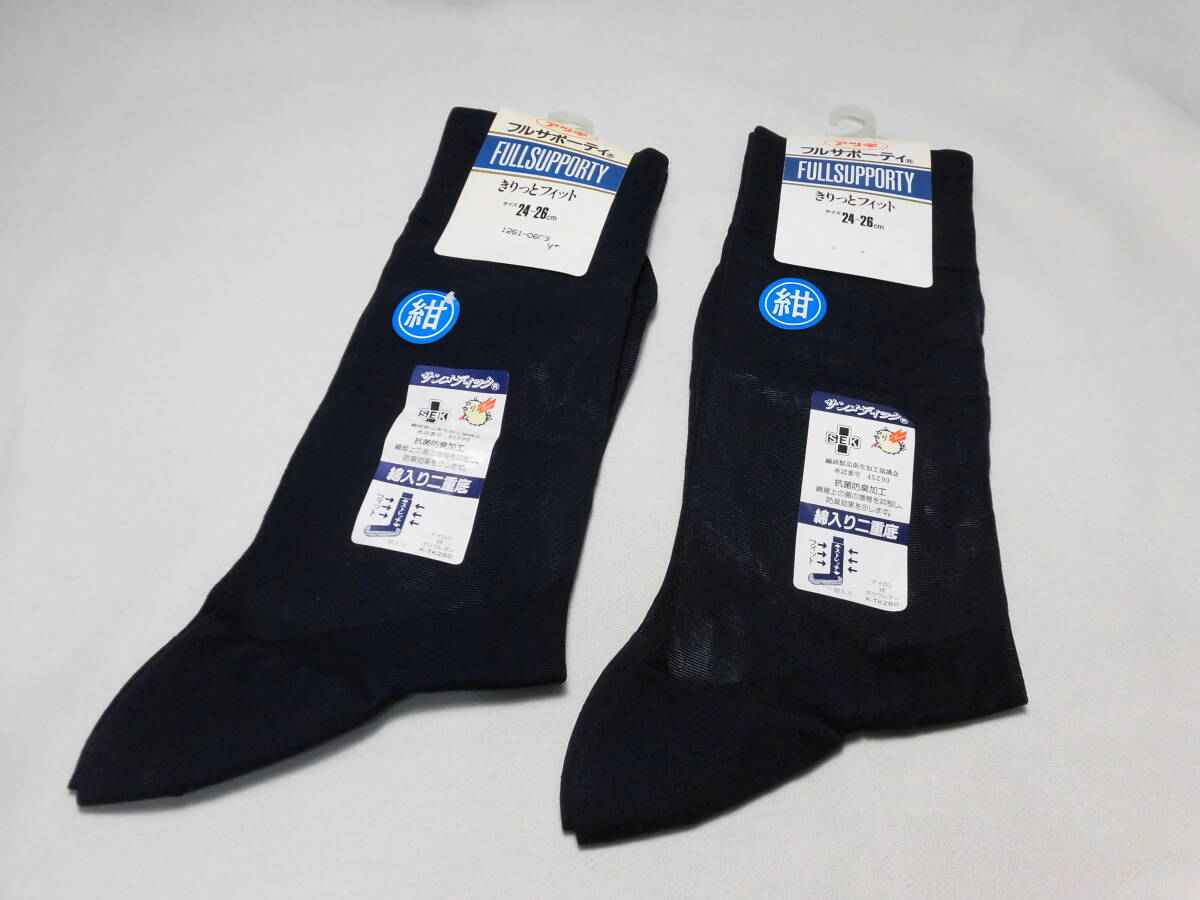 - レトロ 2足セット アツギ 紳士用靴下 ナイロン ドレス ビジネス メンズソックス シースルー 薄手 ハイゲージ 紺 光沢 4847