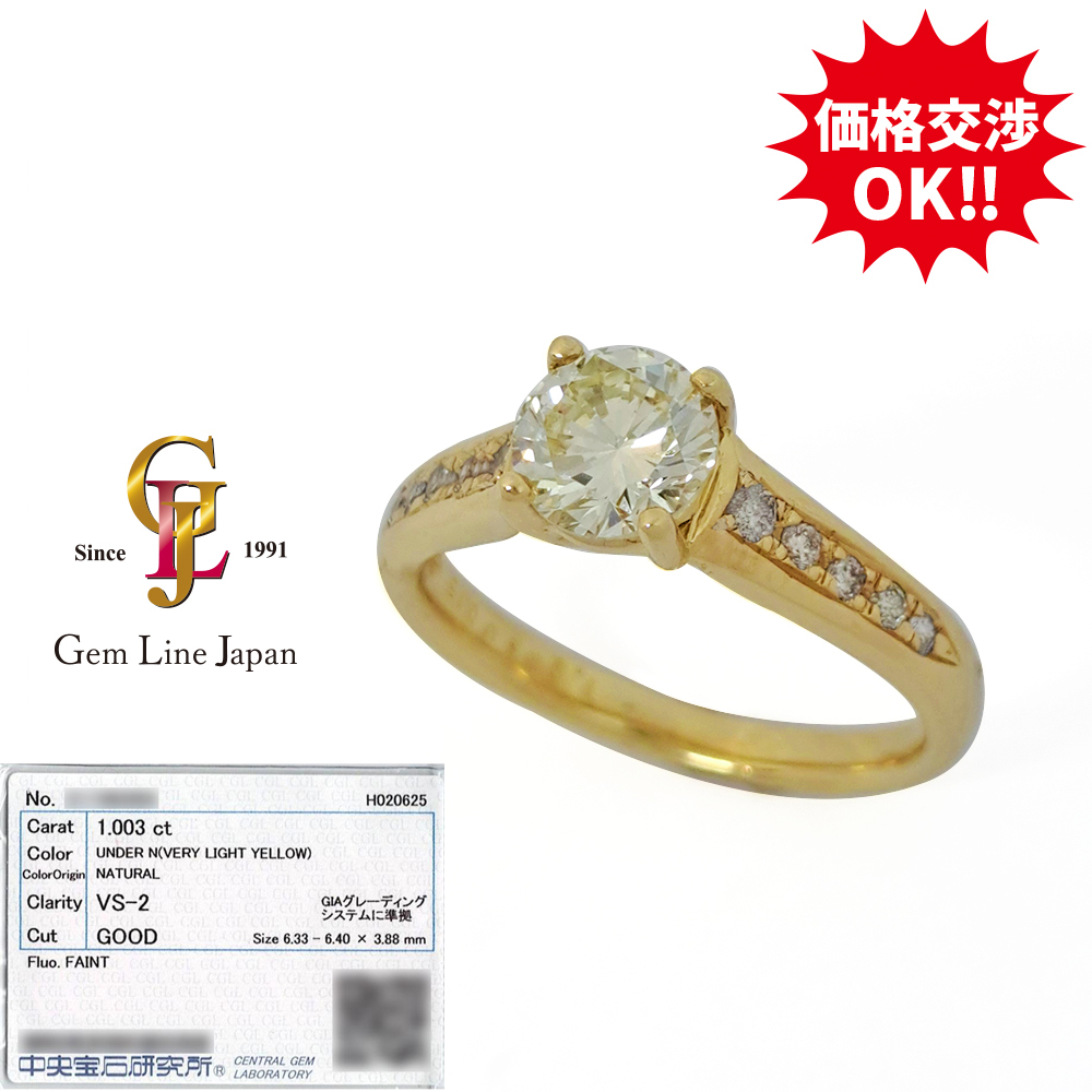 - K18リング イエローダイヤ1.003ct 中央宝石研究所ソーティング付き