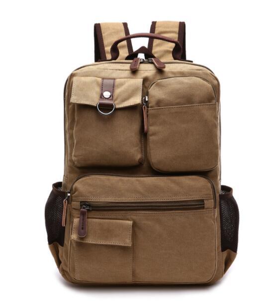 - 新品お色選択可 リュックサック メンズ 帆布 カジュアル アウトドア パソコン 旅行用 カーキ