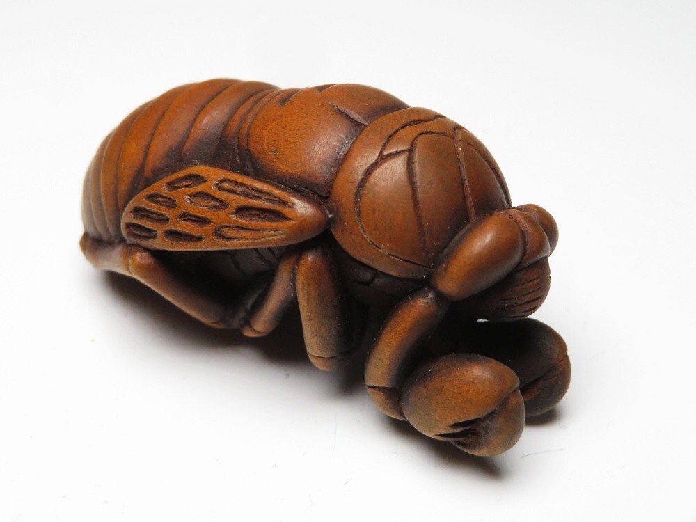 - 【11343】明治期 堤物 木製 蝉 幼虫 置物(初品・買取品)