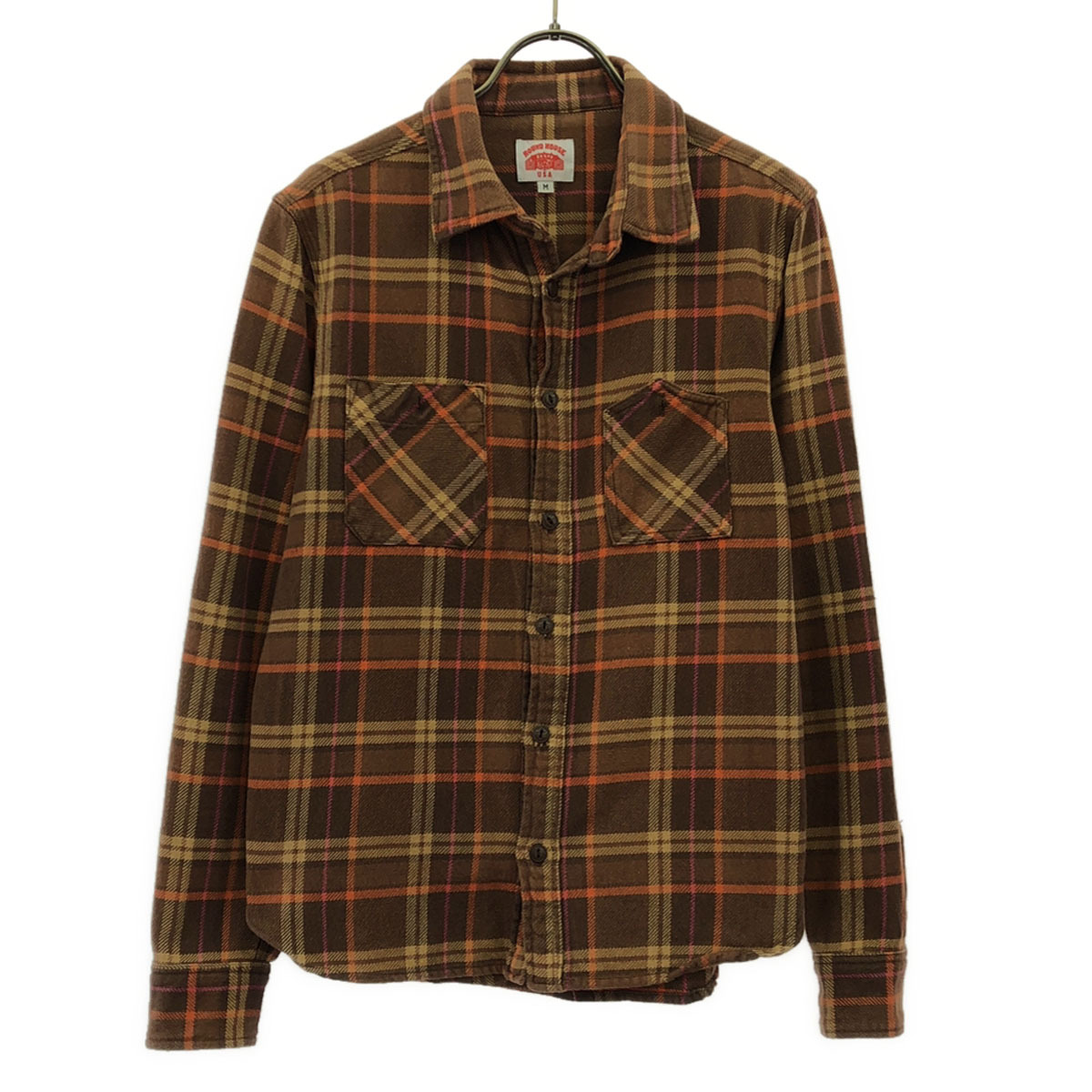 ROUND HOUSE ラウンドハウス チェック柄 長袖 コットンシャツ M ブラウン系 メンズ