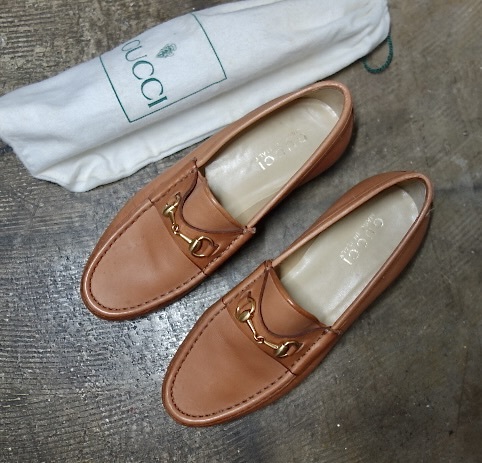 > TK 良品 袋付 オールド グッチ GUCCI ビットローファー 35,5 ナチュラル ブラウン レザーシューズ スリッポン