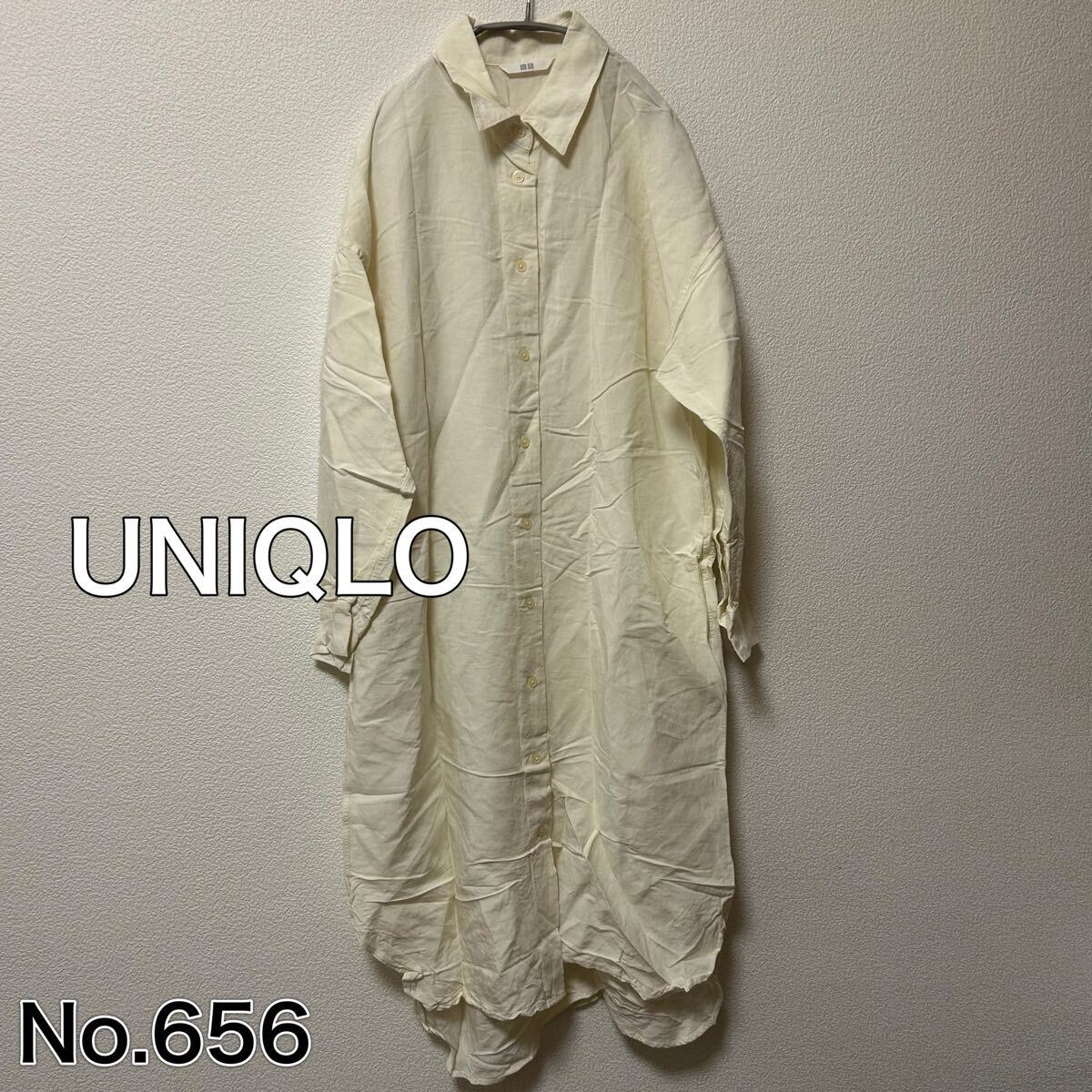 - 送料無料 匿名配送 UNIQLO リネン混 長袖ロングシャツ