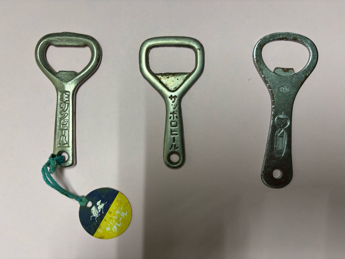 > 【栓抜き キリンレモン/キリンビール、リボンシトロン/サッポロビール、こけし柄の3本】昭和レトロ 栓抜き ヴィンテージ