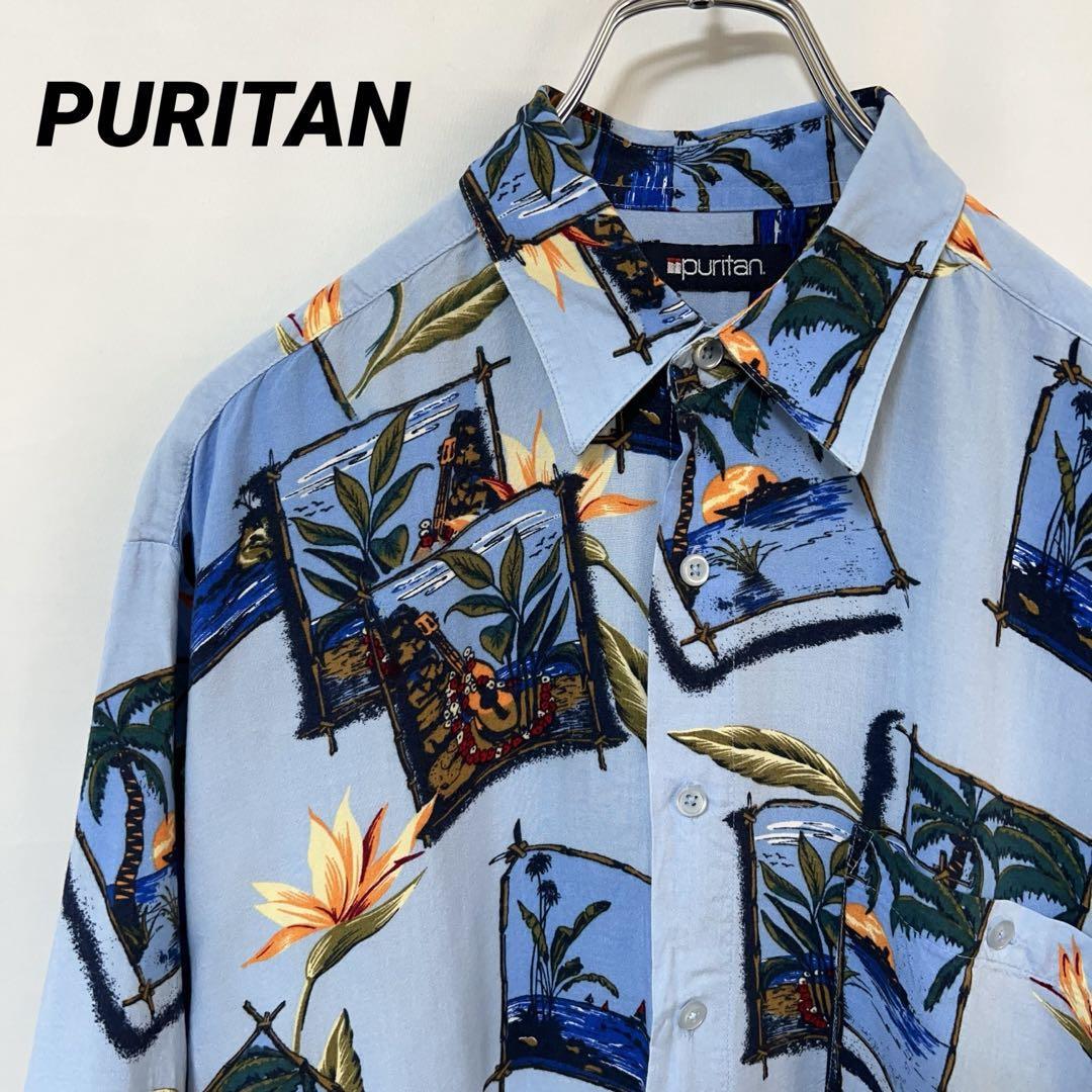 - N-5495 90s PURITAN ピューリタン アメリカ古着 ヴィンテージ アロハシャツ ハワイアンシャツ トロピカル柄 ウクレレ 半袖 レーヨン M