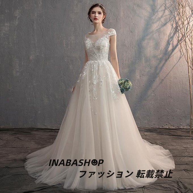 > ウェディングドレス ウエディングドレス 床付きタイプ・トレーンタイプ 2タイプ フレンチ袖 前撮り 後撮り 披露宴 結婚式 海外挙式ドレス