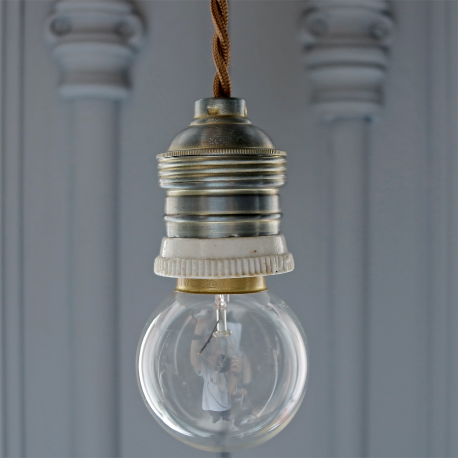 - 1940年代 フランス アンティーク ロウカラー 陶器 フランジ ソケット ランプ B*/吊り下げ 英国 北欧 照明 真鍮 カフェ アトリエ ライト