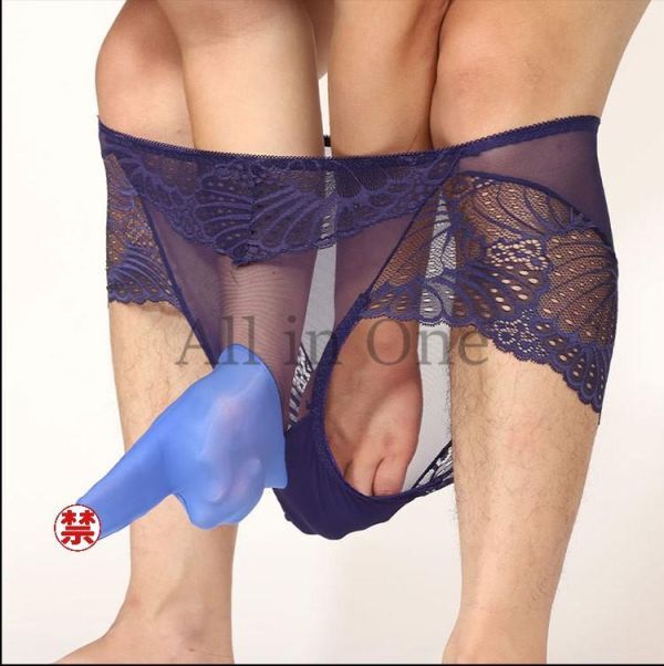 > 145-304-8 透け透けメッシュ サオ付き 先空き メンズパンツ【ブルー,XLサイズ】男性 下着 セクシー エロ ブリーフ ゲイ パンティー.1