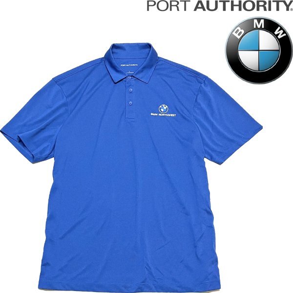 - 1点物◆BMW車ビーエムダブリュー青ポリ素材ポロシャツ古着メンズLレディースOKアメカジ90sストリートスポーツ半袖ブランド自動車企業349657