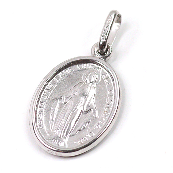 > ウノアエレ UNOAERRE K18WG 聖母マリア メダイ ペンダントトップ 小 1.0g 750WG 楕円 NJ 未使用品