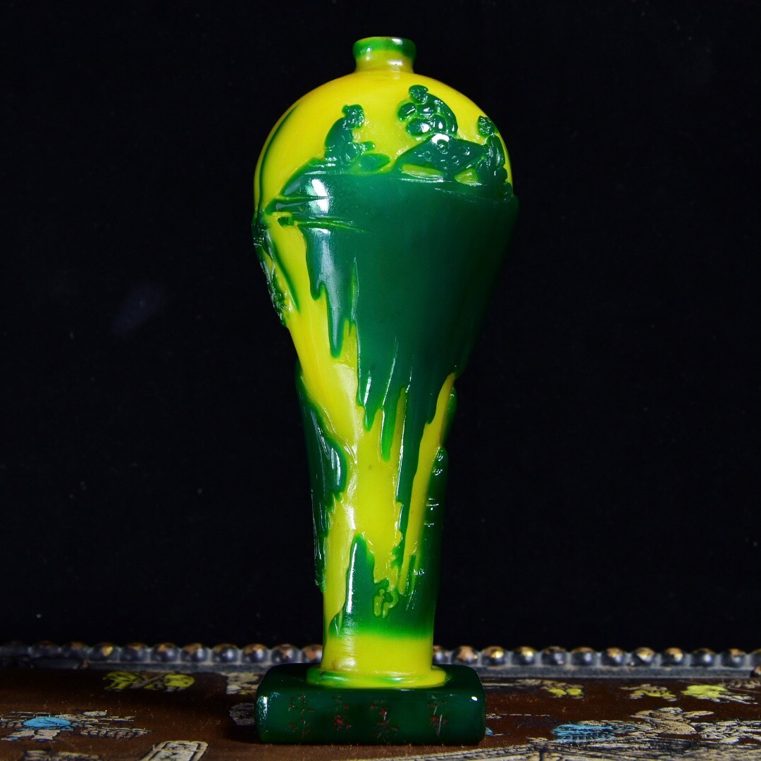 - 蔵友旧蔵出 寿山石 綠田黄石 細密彫 深山聚賢紋 花瓶印章 貴重品 稀少物品 置物 賞物 中国時代美術品