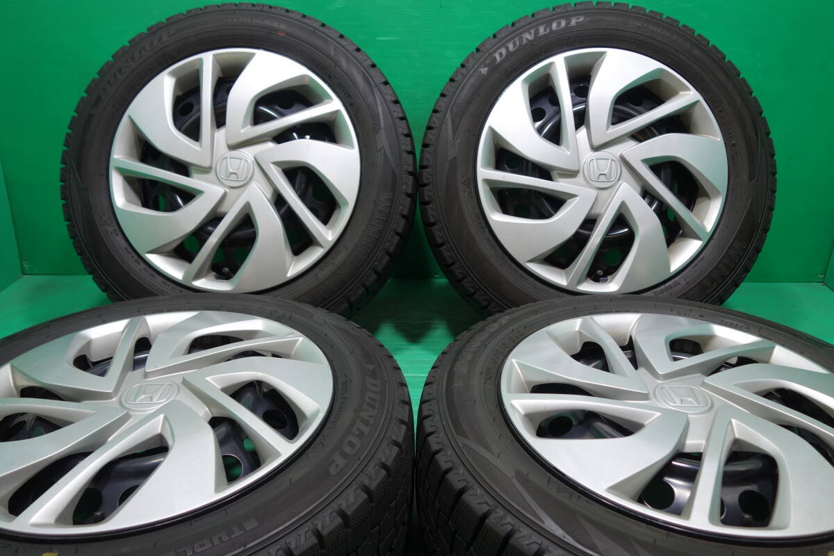 > M2089-22 送料無料 185/60R15 スタッドレス 4本セット ダンロップ WM02 ホンダ 鉄ホイール フィット シャトル グレイス バランス調整済