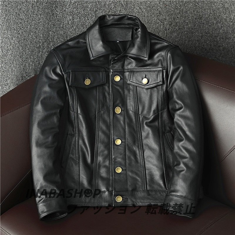 - 欧米超人気!本革 カウハイド レザージャケット バイクジャケット メンズファッション ライダーズジャケット ポケット 牛革S~5XL