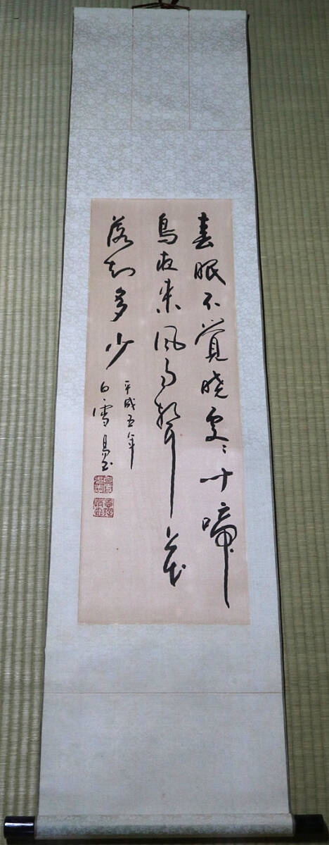 - sg120) 真作 白雪易 Bai Xueyi 書 漢詩文 三行書 掛軸 絹本 墨書 平成5年(1993年) ・中国 上海生 <書道 書画