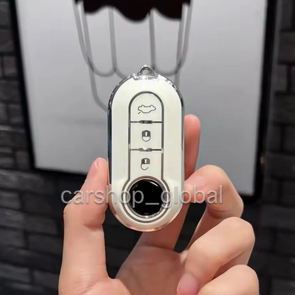 > フィアット FIAT アバルト ABARTH 500/500C/500X/595/695/595C/695C tpu キーカバー キーケース ホワイト プロテクター キーリング