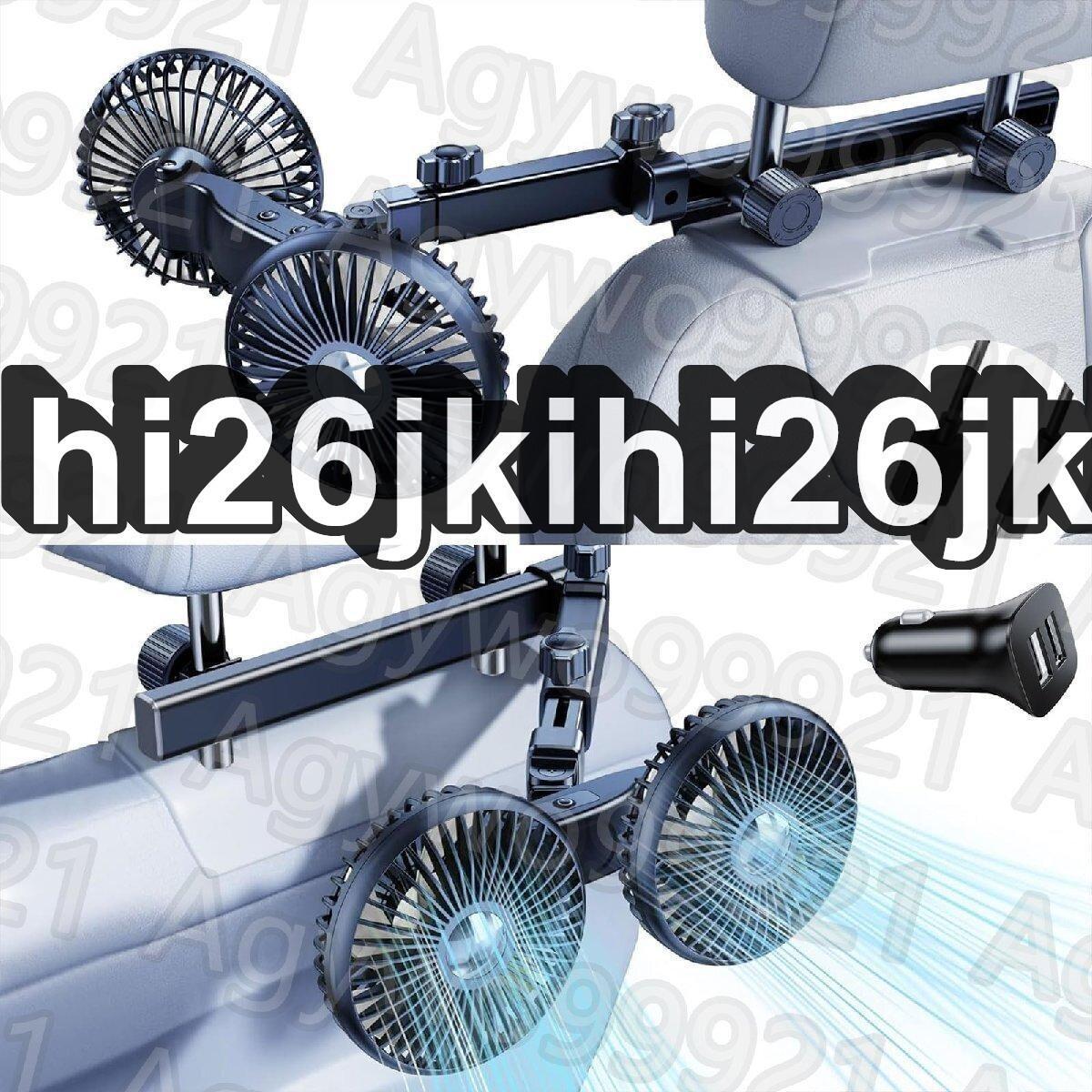 - 車 扇風機 車載扇風機 車用電動ファン ヘッドレスト 後部座席 低騒音 USBポート付き 風量調節 360度調節可能 長配線 クリップ付き