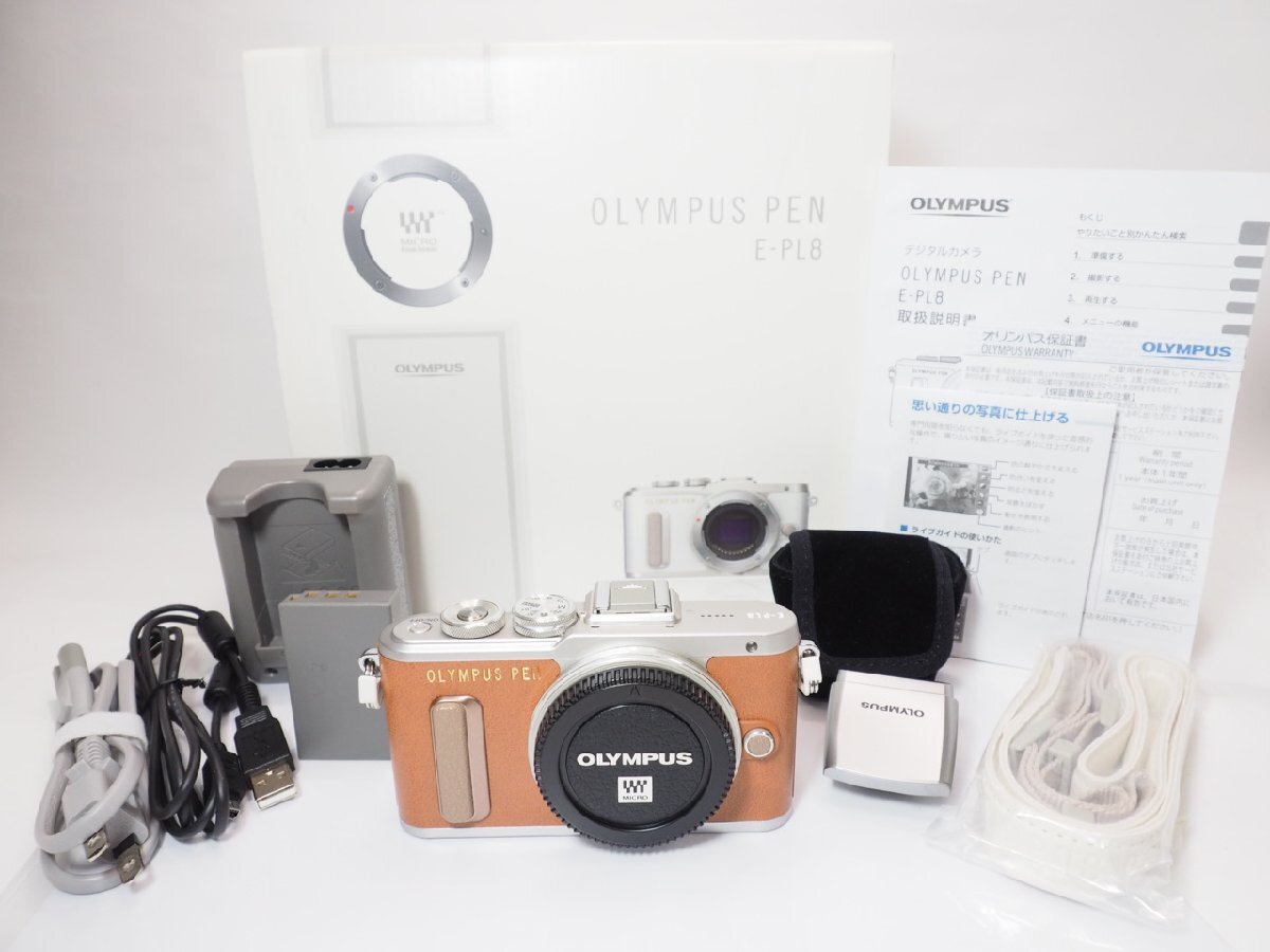 - 【 2503ショット 】OLYMPUS PEN E-PL8 ブラウン ボディー ミラーレスカメラ オリンパス [管OL6284]