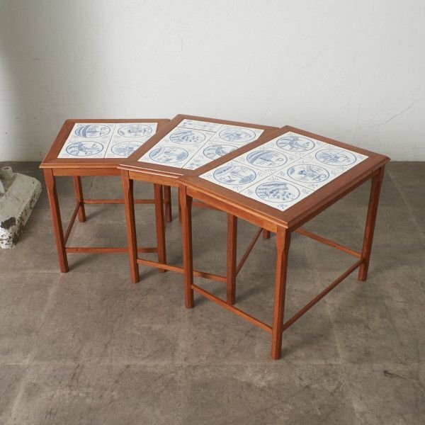 > IZ90787N★デンマーク製 TOFTEN mobelfabrikken 60's ネストテーブル タイルトップ チーク 北欧 ヴィンテージ ビンテージ サイドテーブル