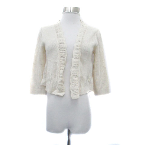 - ランゲージ Language ニットカーディガン 七分袖 麻 リネン混 38 M オフホワイト /HO41 レディース