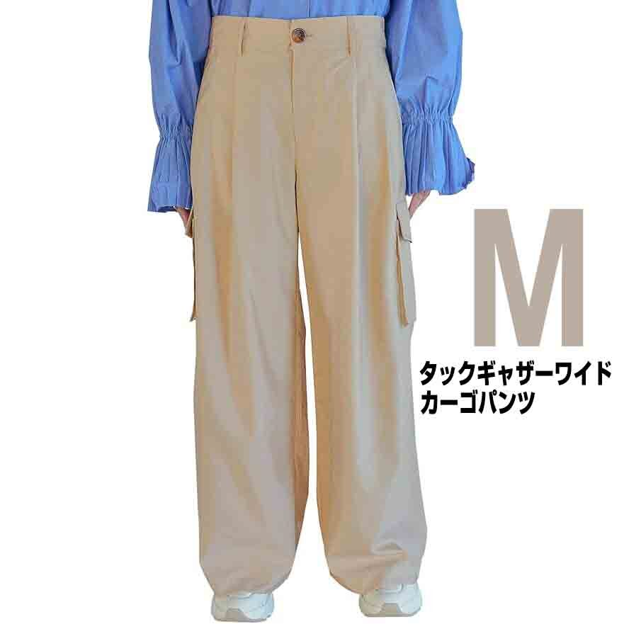 - タックギャザー ワイド カーゴパンツ レディース M ベージュ ViS
