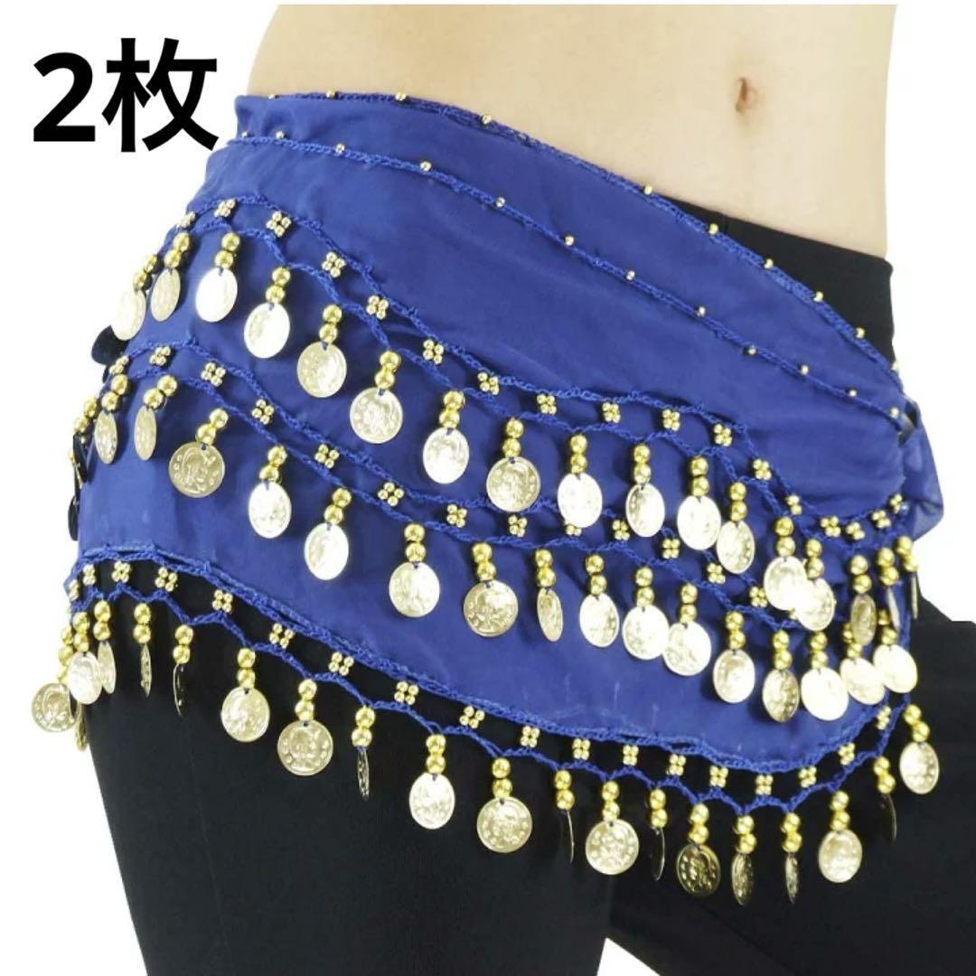 - ベリーダンス ヒップスカーフ 金貨 98 枚ヒップスカーフ アラビアン衣装 青