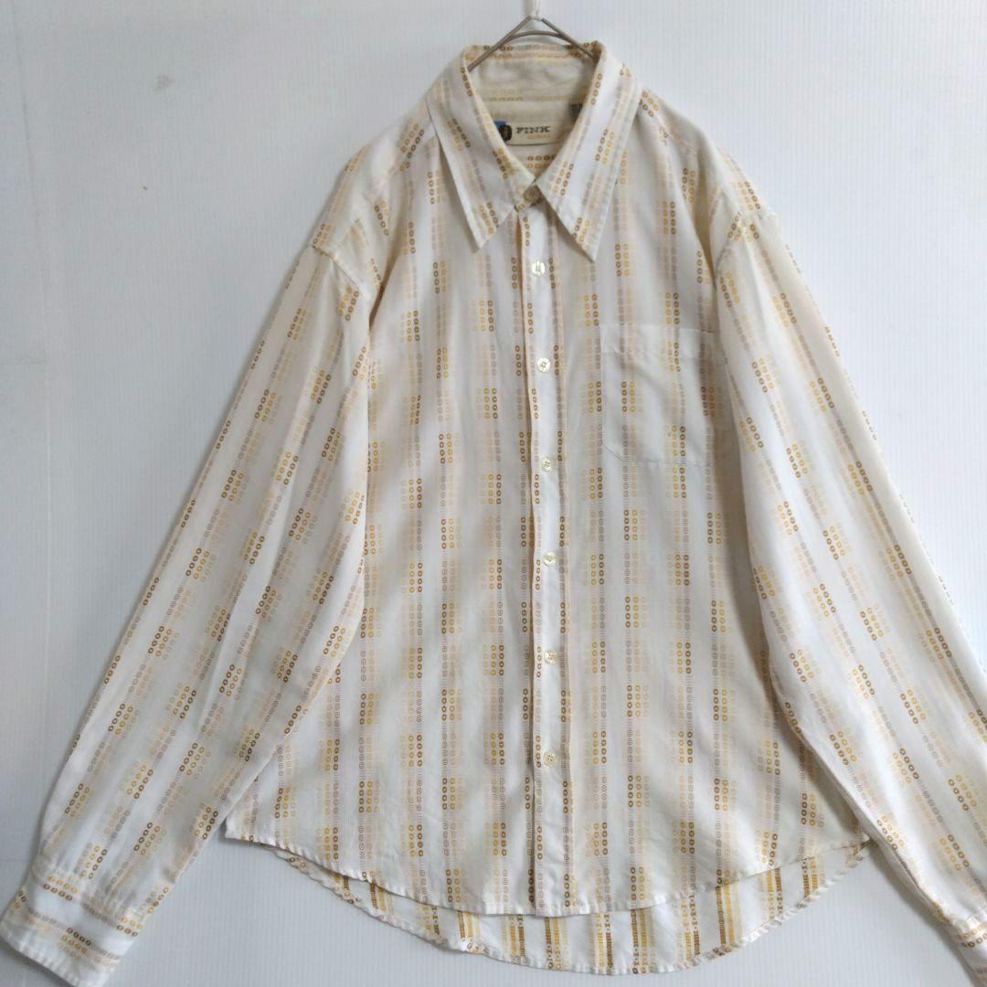 - 2363 FINK 長袖ワイシャツ XL 薄黄茶 柄 US古着 レディス