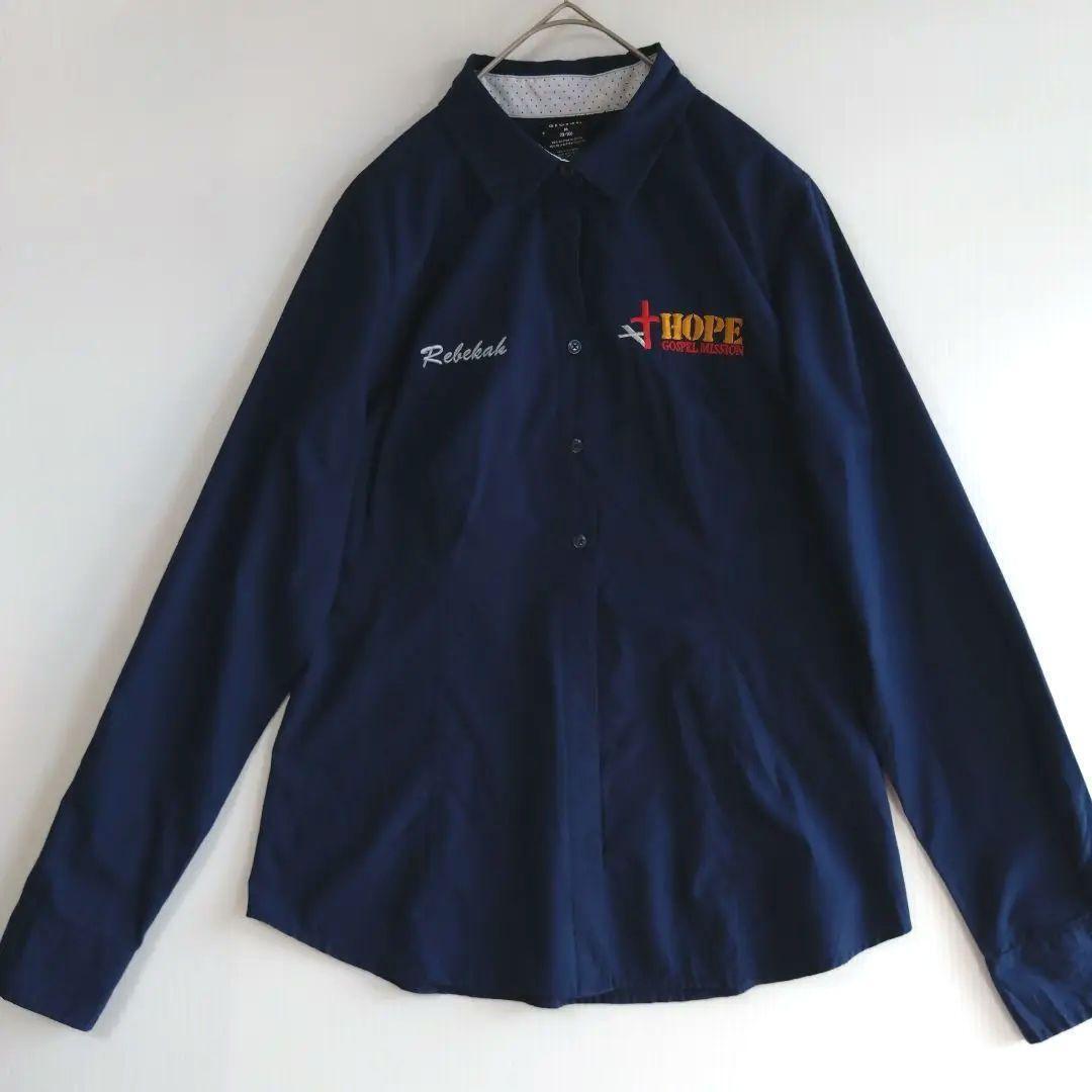 - 2275 GEORGE 長袖シャツ Mサイズ US古着 ネイビー レディース