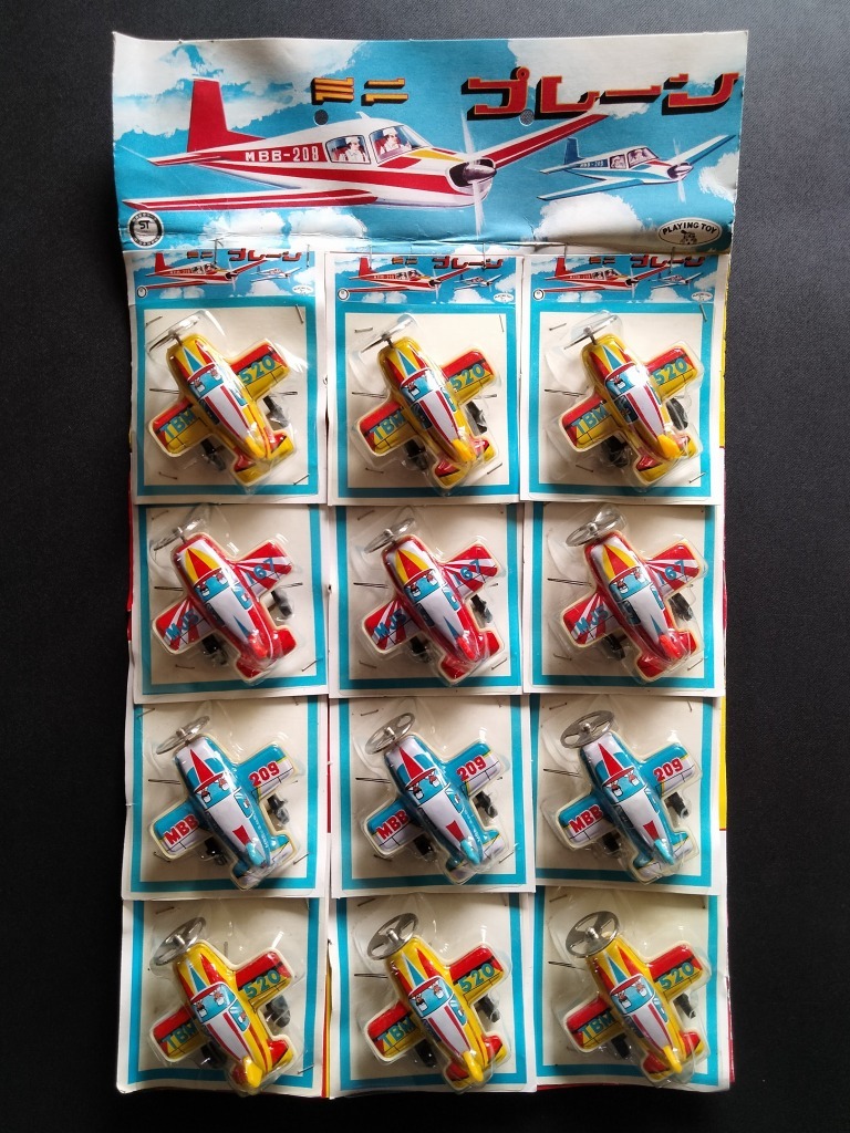 > 古い セスナ プロペラ機 当時物 未使用 12機 台紙付きセット !! ☆ PLAYING TOY ミニプレーン 飛行機 ブリキ プラ フリクション 昭和レトロ