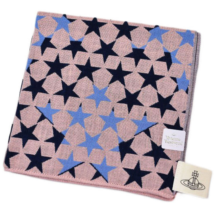 - 大判 ガーゼハンカチ 1枚 ヴィヴィアン ウエストウッド レディース ブランド ピンク 紺 ネイビー スター 星