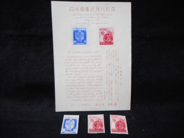 - ◇日本国憲法施行記念 小型シート 1点 1円切手 1点 50銭切手 2点 日本郵便 おまとめ4点 未使用