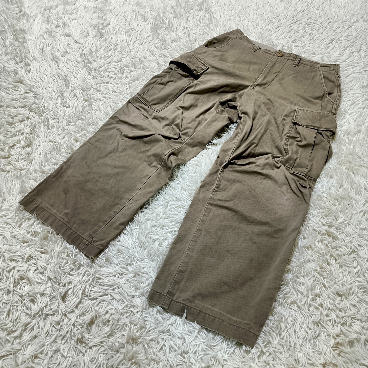 - ★BLUE WAY カーゴパンツ ミリタリー ワーク 6P ボトムス ヘリンボーン カーキ系 size32 ヴィンテージ オールド ブルーウェイ 古着 USED
